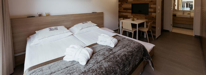 Numero di letti: Letto matrimoniale 1x, Divano letto per 1 persona 1x, Letto doppio 1x, Letto con le sponde possibile per una persona in più: Sì