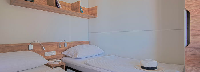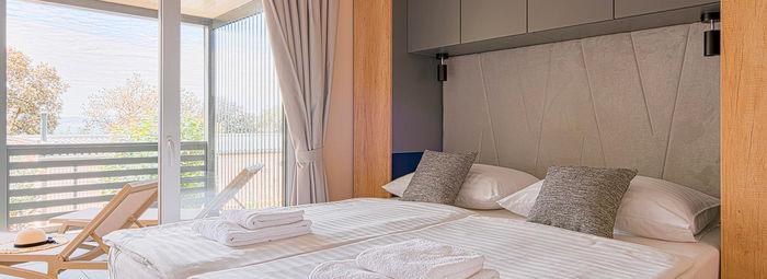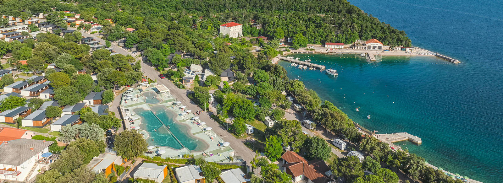Con un design vivace e moderno, una jacuzzi privata e terrazze uniche con viste spettacolari e privacy totale, le case mobili garantiscono un comfort eccellente e una casa ideale lontano da casa. Il campeggio è circondato dal verde e dalla rigogliosa vegetazione mediterranea e il punto focale è il complesso di piscine all'aperto con due cascate, situato in prossimità del mare, e c'è anche una piscina per i più piccoli con numerose strutture di accompagnamento. Godetevi gli splendidi dintorni e il microclima benefico, che consiste in una combinazione unica di aria di mare e di montagna, arricchita con aerosol medico. Se volete rimanere attivi, noleggiate l'attrezzatura presso il centro immersioni e provate a esplorare le profondità sottomarine, fate una gita panoramica in barca o optate per una gita di un giorno e scoprite le bellezze naturali dei parchi nazionali di Plitvice e Risnjak
